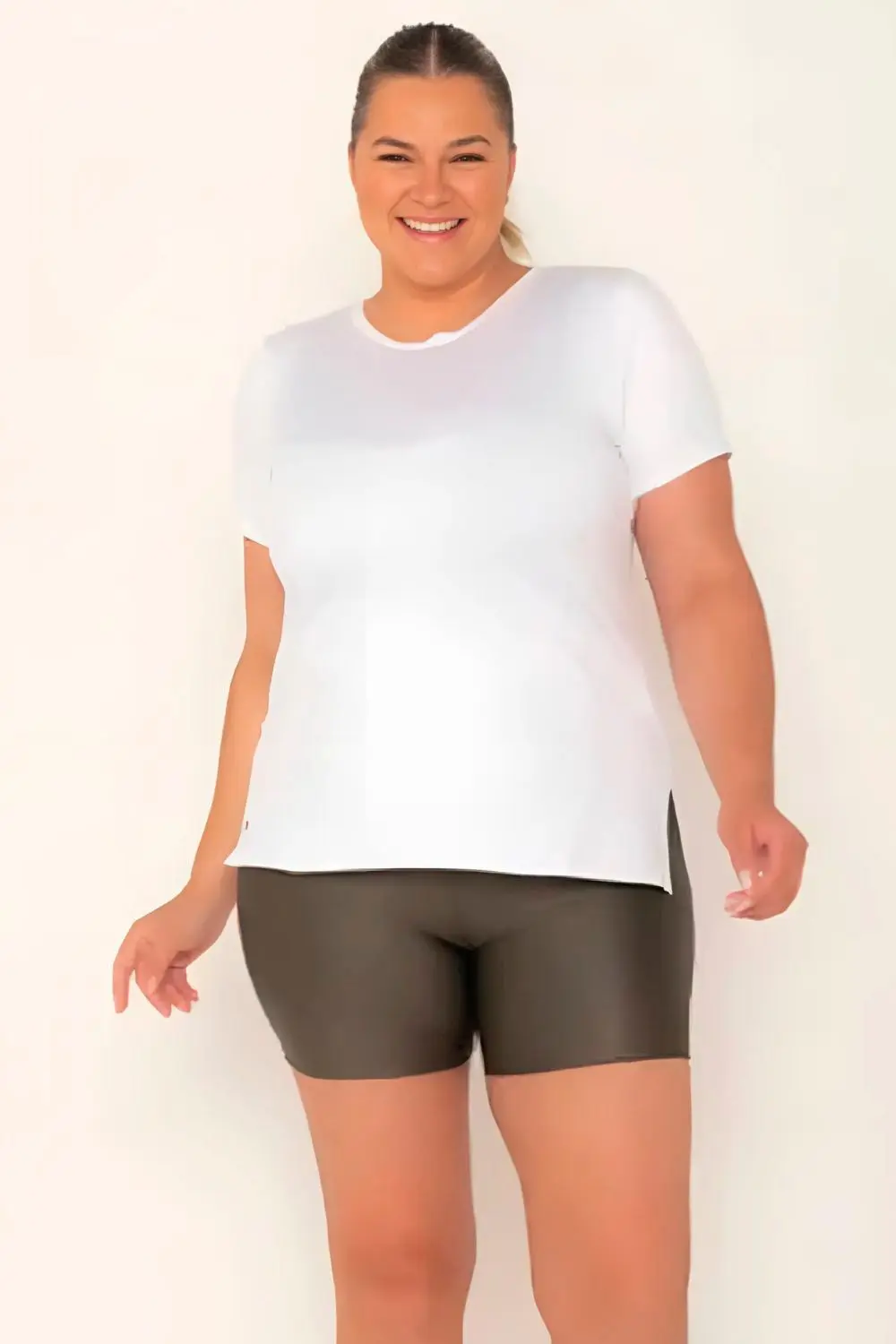 Camiseta fitness de tecido super leve e esportivo, permitindo transpiração. As costas com abertura oval trazem um charme extra e refrescante para o look. A frente é lisa com pequenas fendas nas laterais, está é uma peça versátil para qualquer clima, sendo essencial no seu guarda-roupa.
