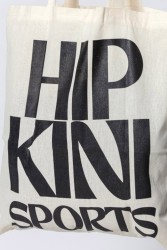 Características: Uma ecobag branca com uma impressão gráfica adicional em silk preto.