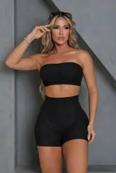 Conjunto fitness confeccionado em tecido texturizado de alta elasticidade, que modela o corpo com conforto e firmeza. O top faixa oferece sustentação e visual moderno, enquanto o short de cintura alta valoriza a silhueta com ajuste perfeito. Ideal para treinos ou para um look esportivo sofisticado no dia a dia.