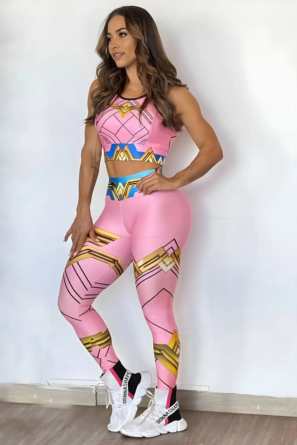 Este CONJUNTO é inspirado no traje da Mulher Maravilha, sendo uma opção ousada e divertida para os fãs da personagem. Pode apresentar uma silhueta ajustada ao corpo, destacando as curvas femininas, e detalhes como decotes ou recortes estratégicos para um visual ainda mais impactante.