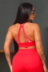 Conjunto fitness em vermelho vibrante, com top de alças finas e estampa de corações que une charme e atitude. A legging de cintura alta modela o corpo com conforto e segurança, oferecendo excelente sustentação e liberdade de movimento. Ideal para treinos, produções athleisure ou looks casuais cheios de personalidade.