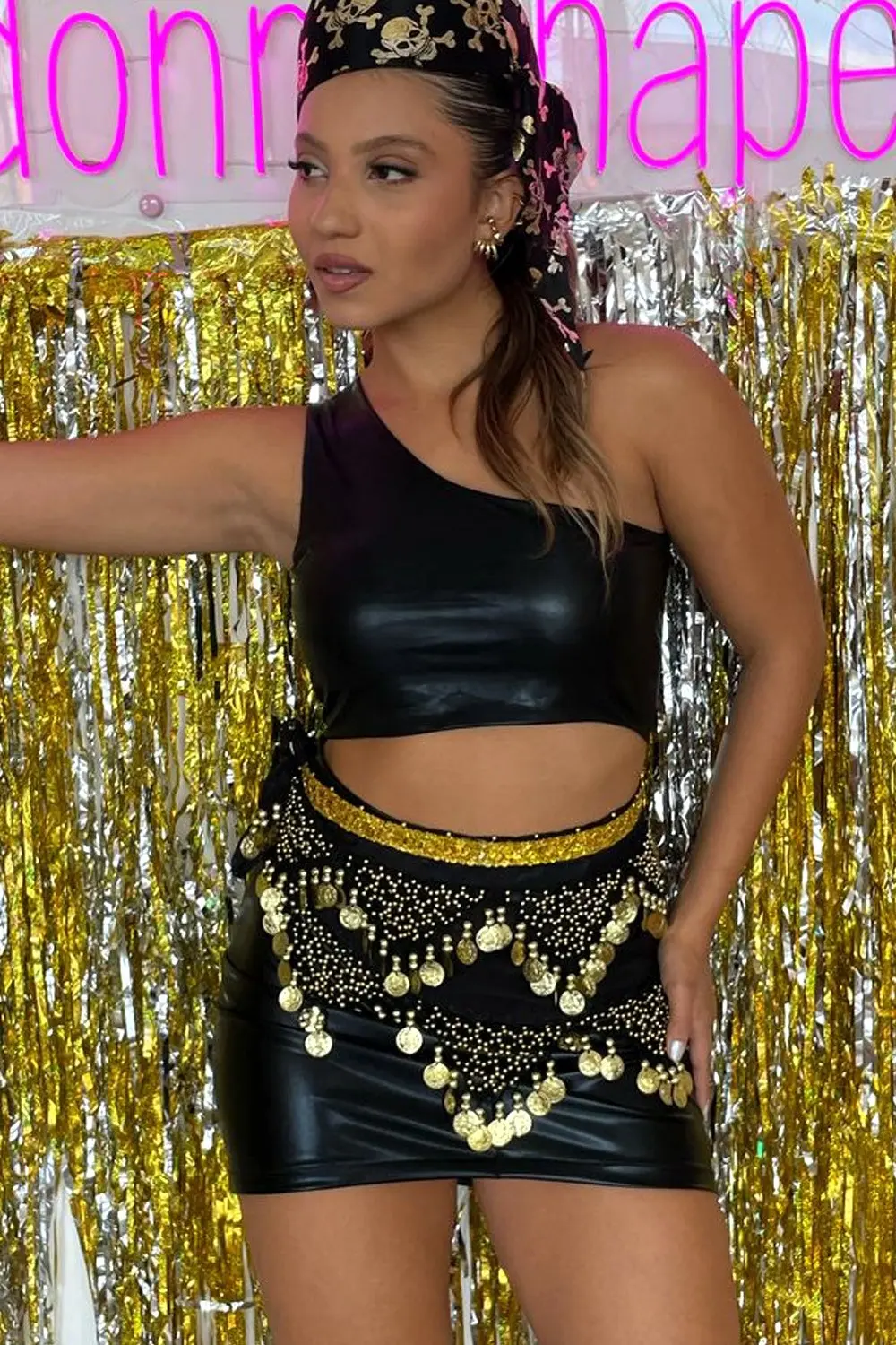 Top preto fashion de courino com toque brilhante no tecido. Alça única de um ombro só, que traz elegância e estilo para o look, perfeito para ocasiões casuais ou refinadas.