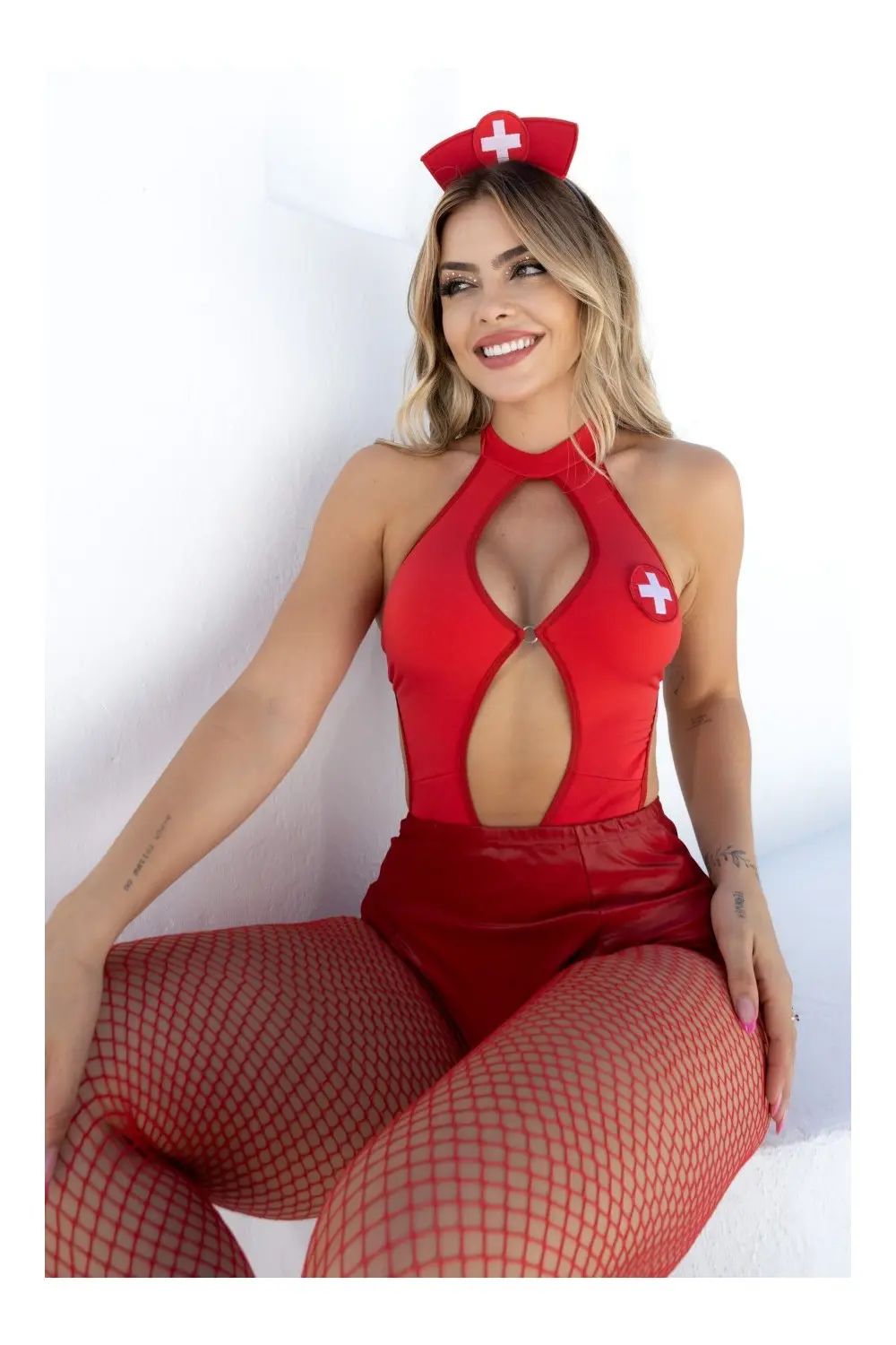 Características: Fantasia com um corte picante e provocante. Feito em visco lycra esse body modela seu corpo de maneira espetacular. Possui detalhe em argola de metal, símbolo de cruz na frente, fecho que regula nas costas, abotoamento no pescoço facilitando para vestir e tirar. Tiara personaliza que se ajusta na cabeça.