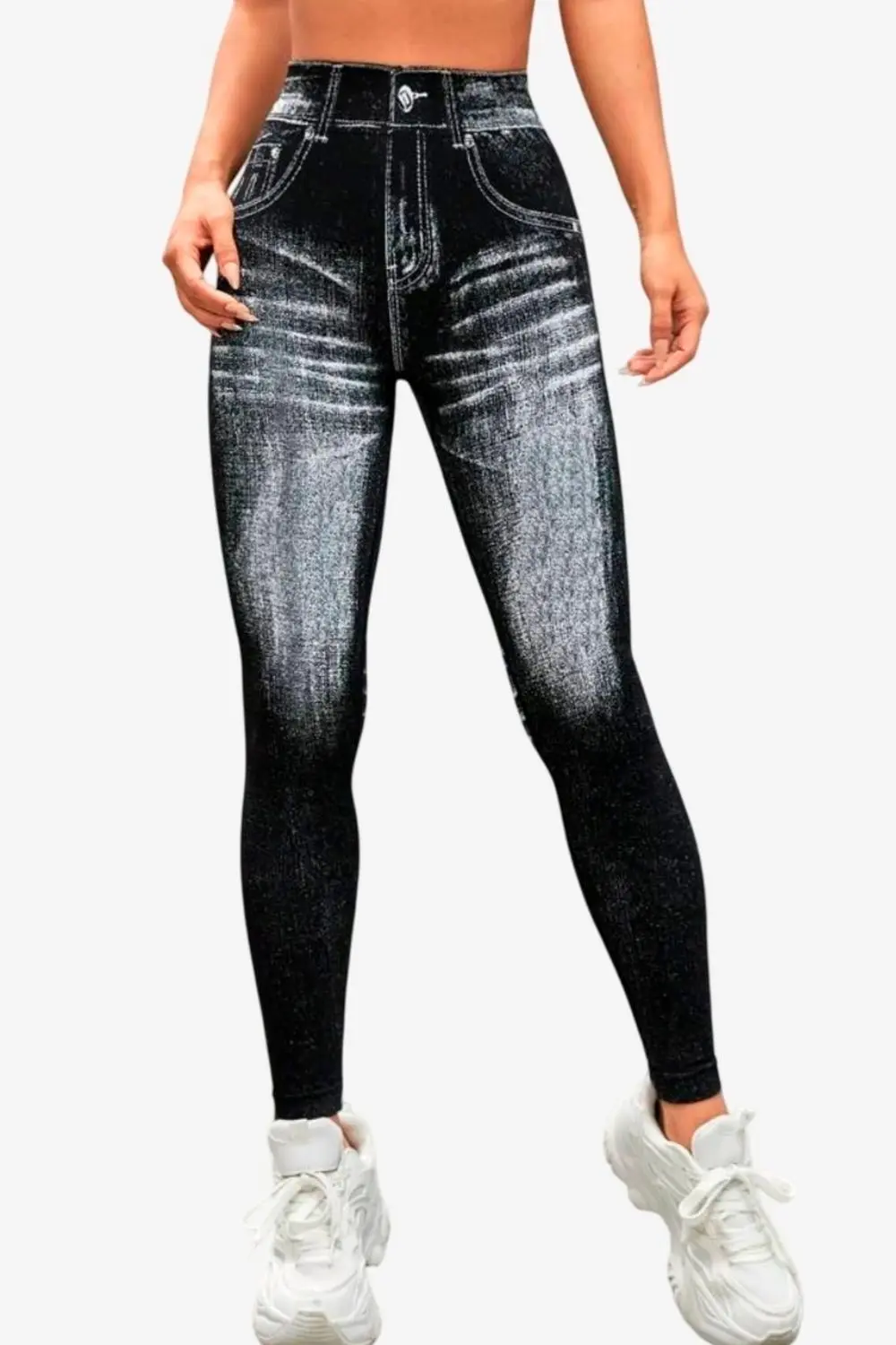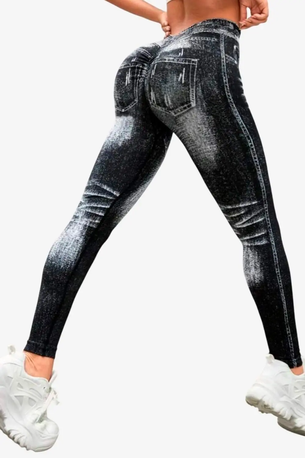 A legging fake jeans une o visual poderoso do denim com o conforto extremo do tecido fitness. Modelagem que valoriza o bumbum, cintura alta que define e zero aperto. É aquela peça que engana todo mundo — menos você.