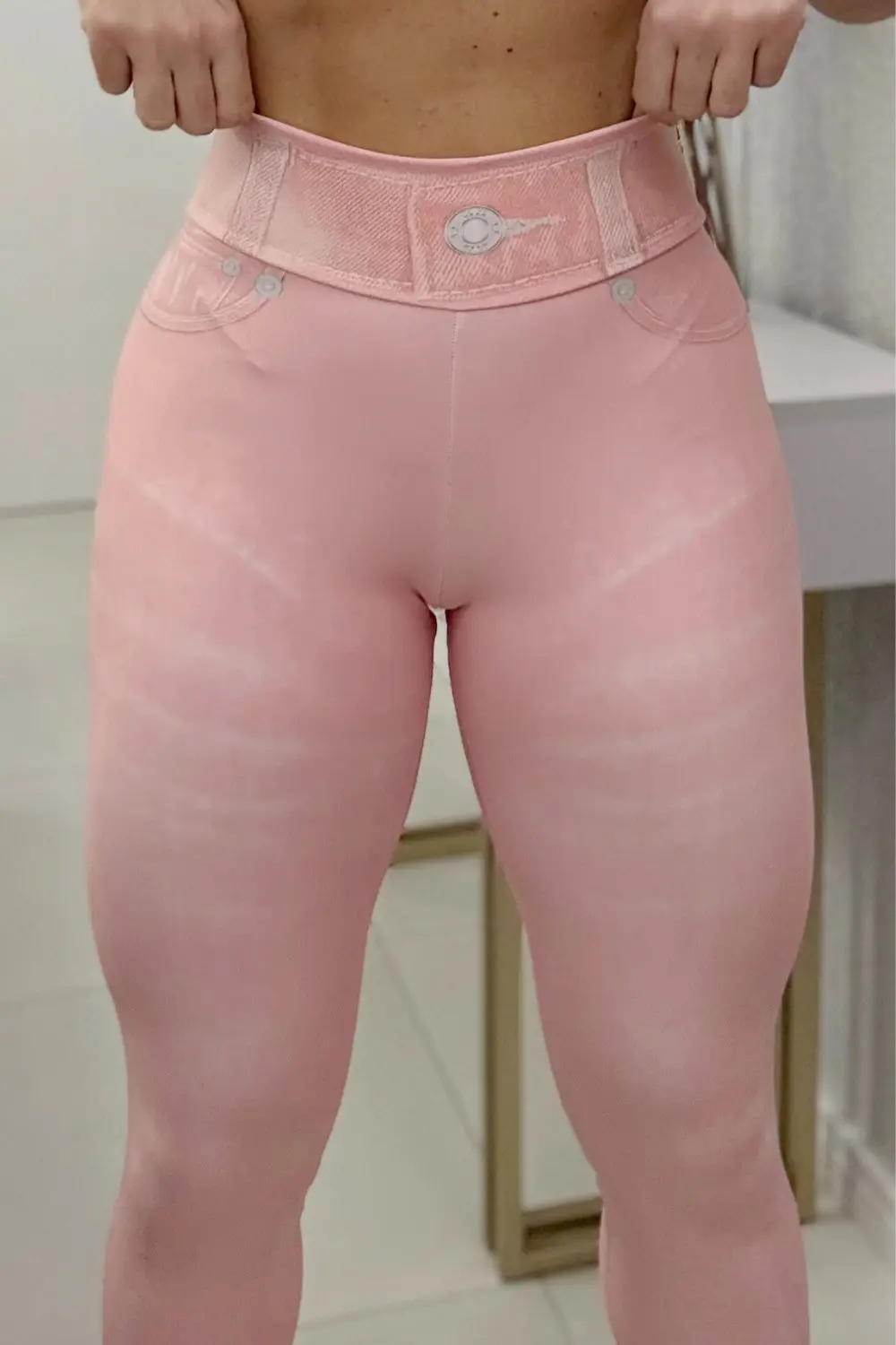 Modelagem que valoriza as curvas com estampa digital que imita jeans desgastado. Confeccionada em tecido duplex de alta compressão, garante ajuste perfeito ao corpo com muito conforto e estilo. Ideal para treinos ou composições casuais com atitude.