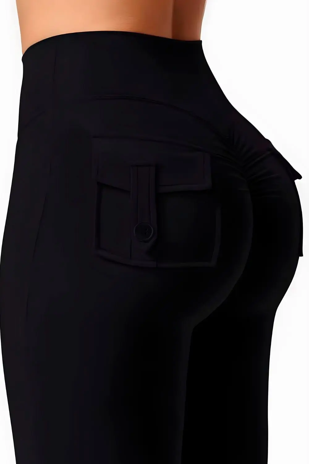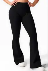 Legging fitness flare de cintura alta, confeccionada em tecido de alta elasticidade que garante conforto, sustentação e liberdade de movimento. Possui bolsos traseiros com botão funcional, que agregam estilo e praticidade, além de modelagem estratégica com efeito empina bumbum, valorizando a silhueta. Caimento elegante, design moderno e acabamento de qualidade, ideal para treinos ou uso casual.