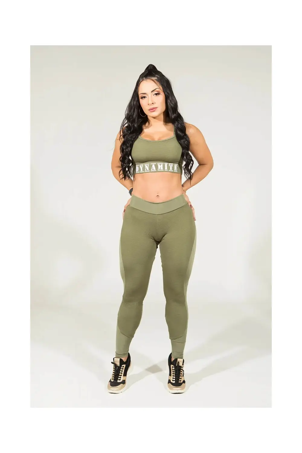 Apresentamos nossas leggings fitness verde musgo! Essas belezas são projetadas para fazer você se sentir confiante e elegante durante o treino. Os detalhes redondos em verde claro estão estrategicamente posicionados para realçar suas curvas, enquanto o tecido confortável e elástico permite máxima flexibilidade e mobilidade. Legging sem empina bumbum.