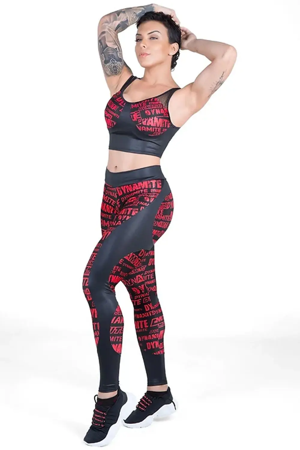 Prepare-se para chamar a atenção com estas leggings pretas com estampa gráfica vermelha, com o toque adicional de cirre sobre o cós, e acabamento em tecido preto nas suas laterais e gluteos, garantindo que você se destaque na multidão com essa peça cheia de atitude. Legging sem empina bumbum.