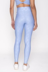 Legging fitness em tom de azul claro, confeccionada em tecido com leve brilho e textura sutil que adiciona um toque moderno e elegante ao visual. Possui cintura alta que proporciona maior sustentação e conforto, modelando a silhueta. O comprimento oferece liberdade de movimento, sendo ideal para atividades físicas ou composições casuais. A peça combina praticidade e estilo, destacando-se pelo caimento ajustado ao corpo, valorizando as curvas sem comprometer o conforto.