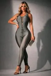 Macacão moderno confeccionado em tecido com leve brilho e elasticidade, garantindo conforto e um caimento impecável. Apresenta decote profundo com detalhe trançado e costas abertas, realçando a feminilidade e as curvas. A modelagem justa alonga a silhueta, tornando-o ideal para eventos noturnos, festas ou ocasiões especiais que pedem um look elegante e marcante.
