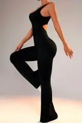 Macacão flare de caimento impecável, com modelagem ajustada que destaca a silhueta de forma elegante. O design minimalista, com alças largas e decote equilibrado, ganha destaque pelo recorte nas costas, que adiciona modernidade à peça. Ideal para composições versáteis, do casual ao urbano sofisticado.