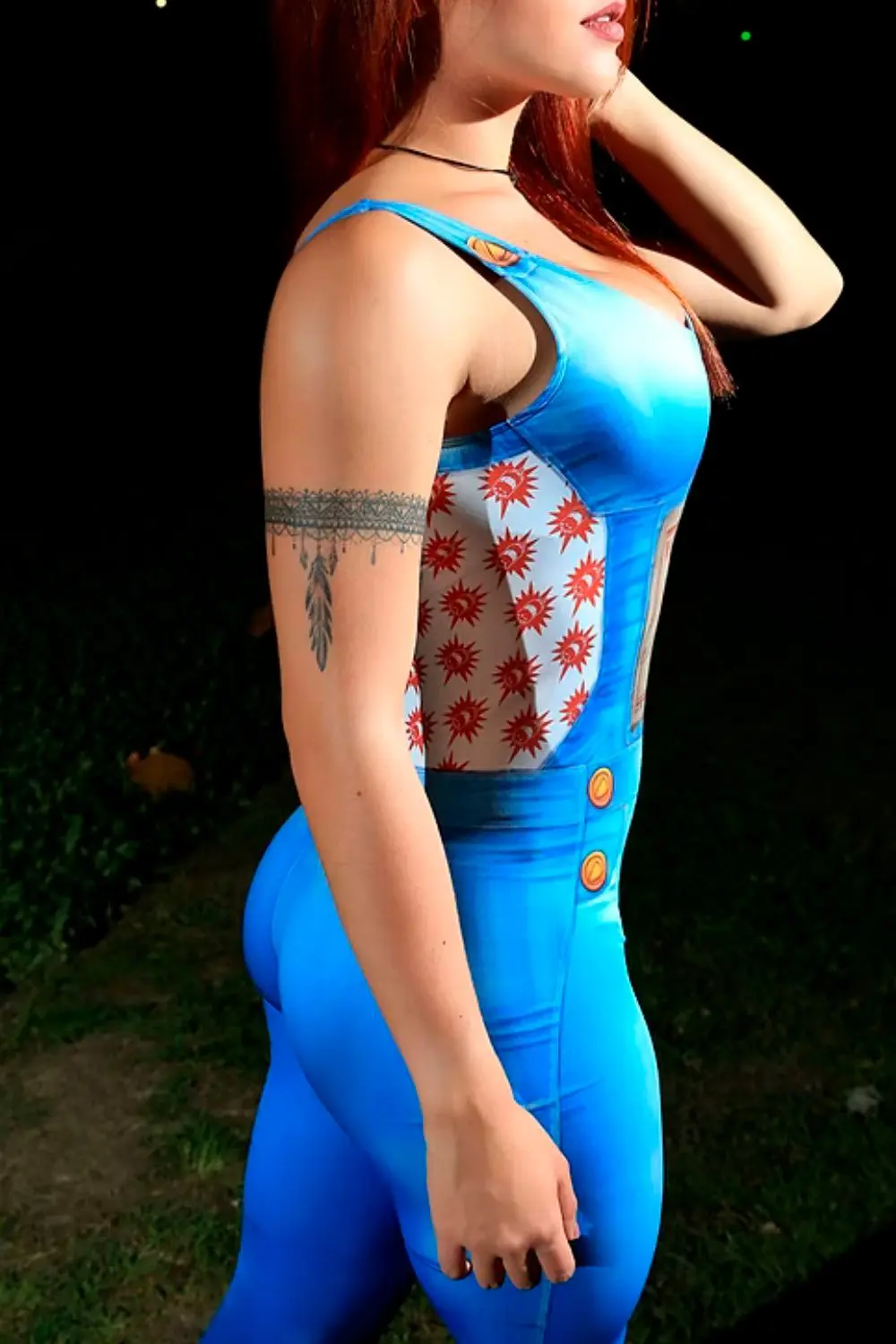 Com o seu design justo ao corpo, o macacão fake jeans é perfeito para as mulheres que buscam um visual elegante e poderoso. Os detalhes brancos nas laterais acrescentam um toque de sofisticação à peça, tornando-a perfeita para usar tanto na academia quanto em outras atividades diárias.