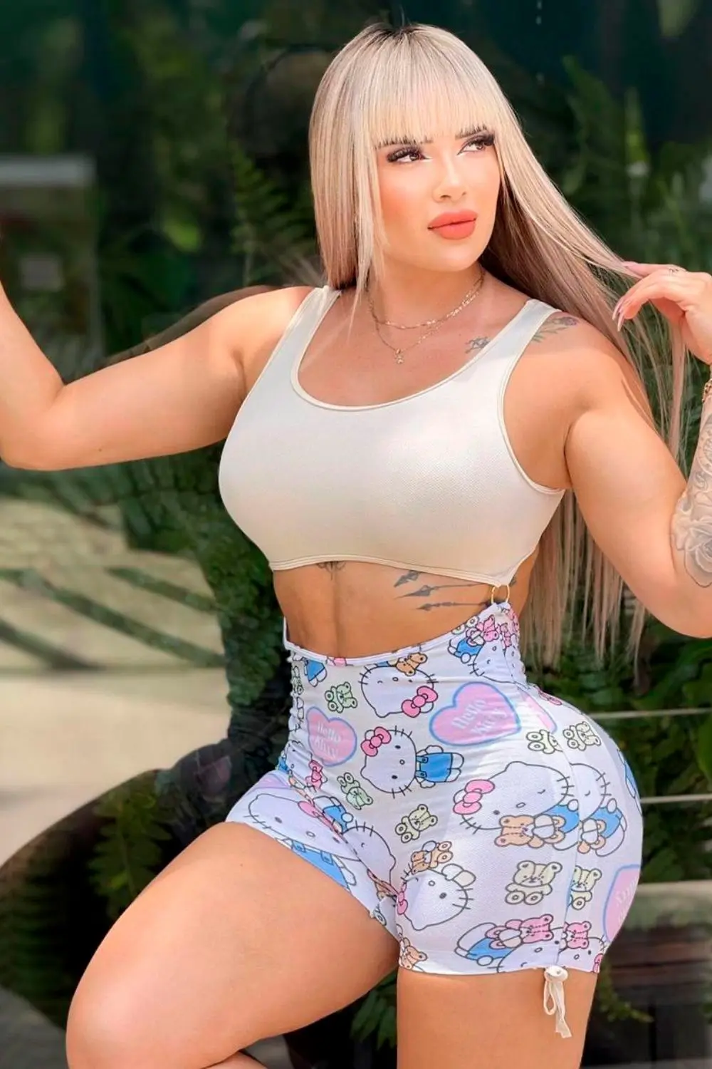 Macaquinho com estampa Hello Kitty, modelagem justa que valoriza as curvas e detalhe de amarração lateral. Confeccionado em tecido leve e confortável, é ideal para compor looks casuais e cheios de estilo.