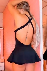 Macaquinho preto com modelagem justa e saia sobreposta, valorizando a silhueta com elegância. Possui decote halter e costas abertas com alças cruzadas, conferindo um toque moderno e sensual. Confeccionado em tecido leve e confortável, é ideal para ocasiões casuais ou saídas noturnas. Perfeito para treinos com estilo e atitude.