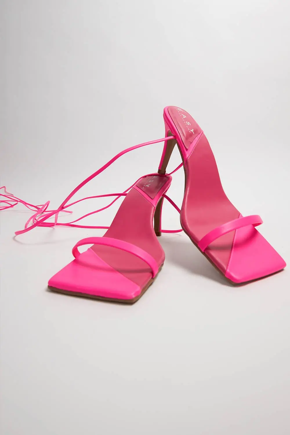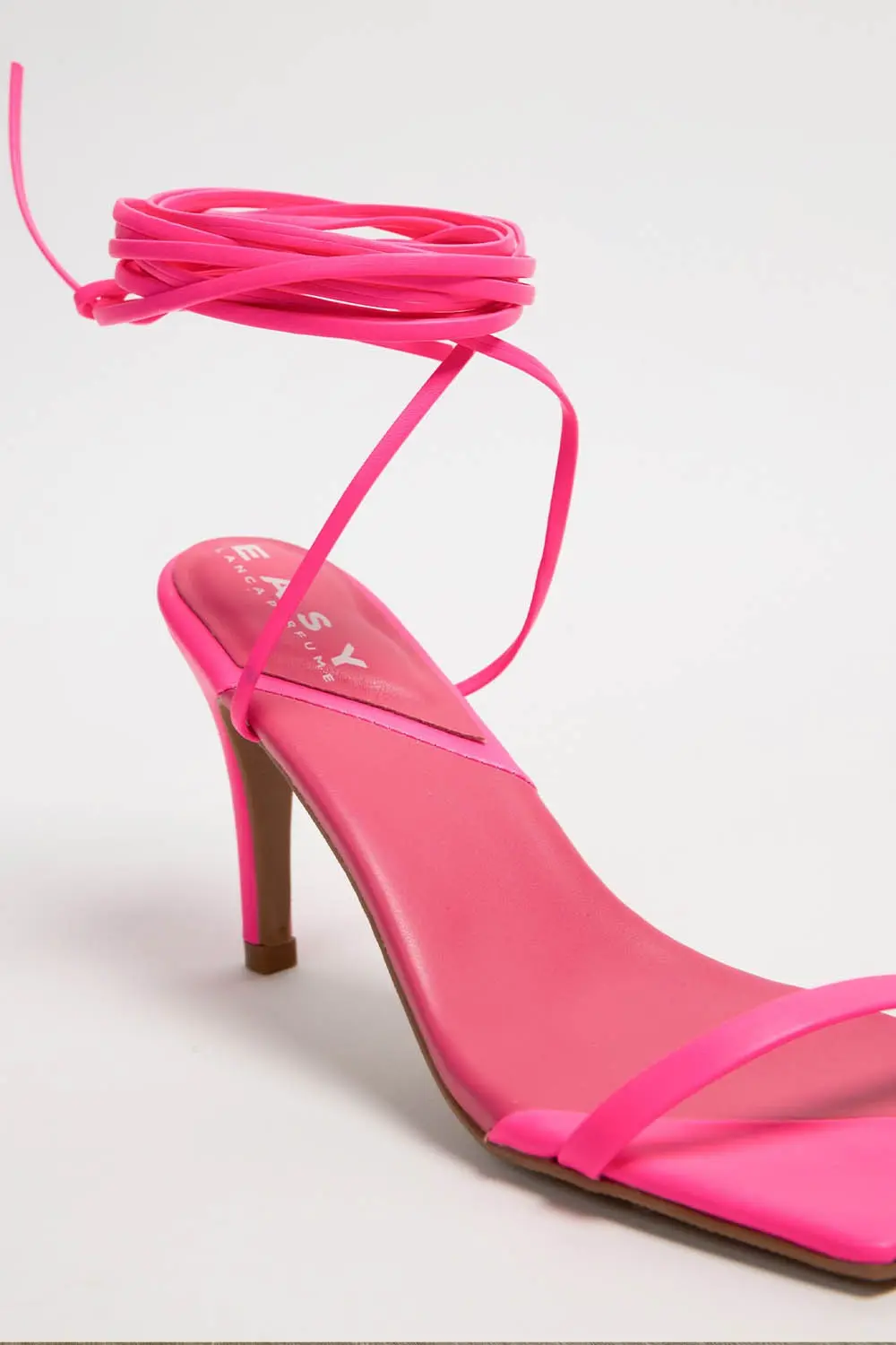 Caracteristica: Sandália de tiras com salto fino com amarração.