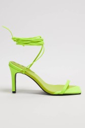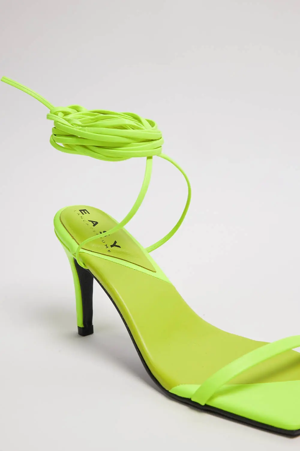 Caracteristica: Sandália de tiras com salto fino com amarração.
