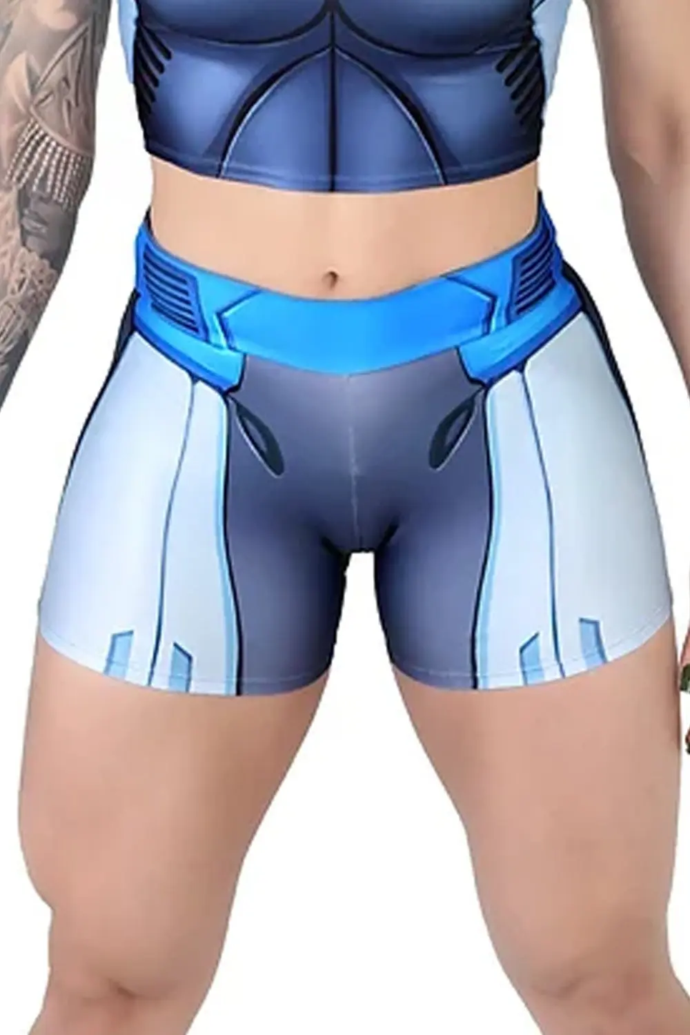 Prepare-se para agitar seus treinos com nossos shorts de fitness robóticos gráficos preto e azul! Estes shorts não são apenas roupas esportivas comuns – eles são uma declaração ousada de estilo e poder. A atraente impressão em preto e azul apresenta um design robótico futurista que adiciona uma vantagem eletrizante à sua rotina de exercícios.