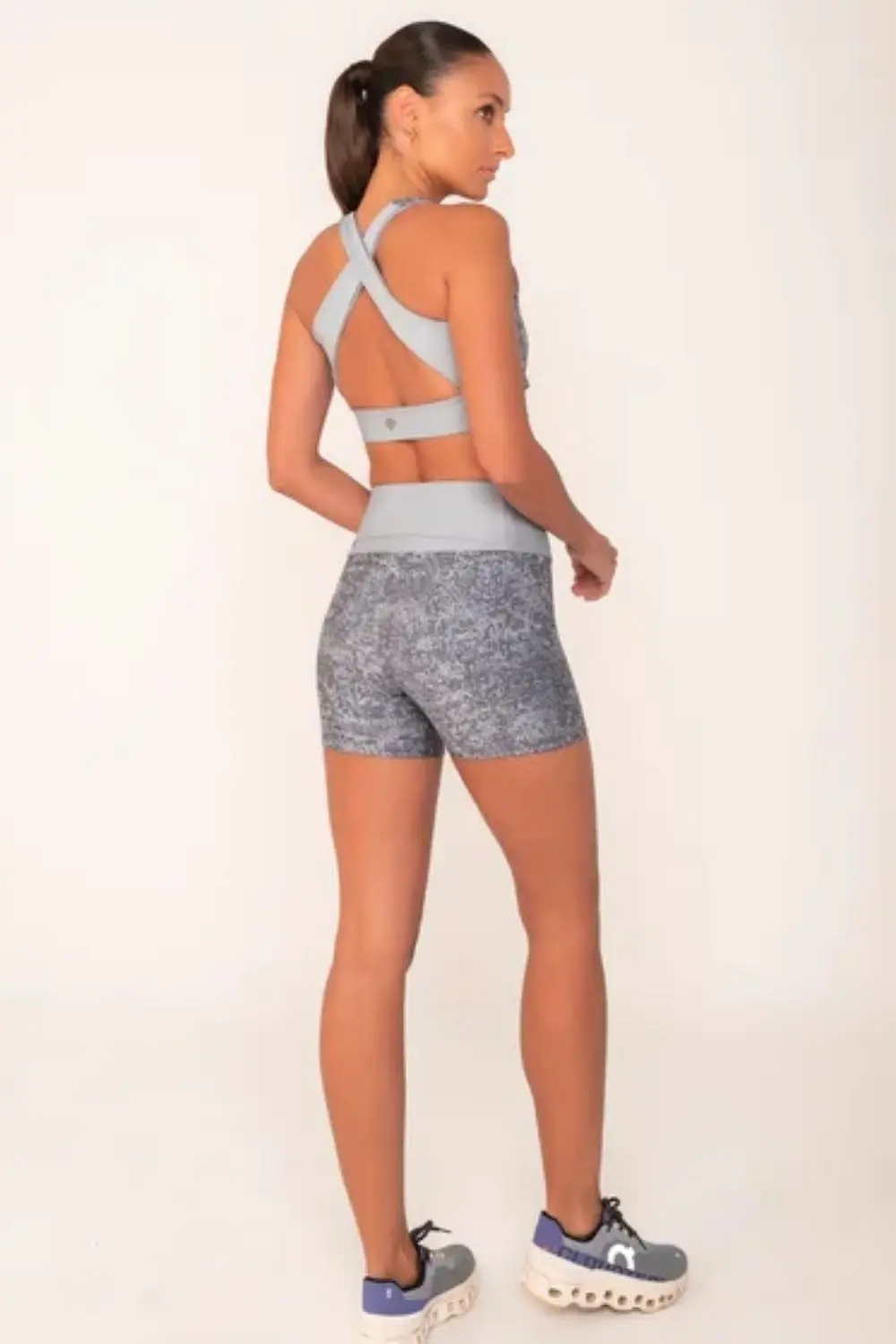 Shorts Místico fitness Cinza de cós alto e tecido elástico que permite extremo conforto e mobilidade, ideal para qualquer ocasião. Seu tom charmoso traz sofisticação ao look.