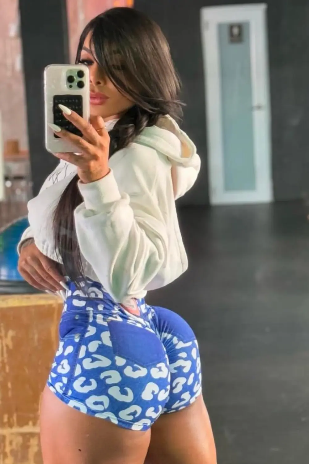 Shorts fitness de alta compressão com estampa jeans animal print exclusiva. Modelagem cintura super alta, realçando a silhueta e oferecendo firmeza total para o treino. Conforto, estilo e performance em uma única peça.