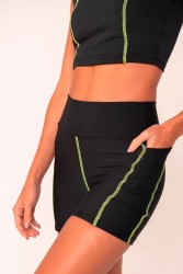 Shorts fitness em tecido de alta performance, com cintura alta que garante sustentação e recortes com costura contrastante que valorizam a silhueta. Ideal para treinos com estilo e conforto.