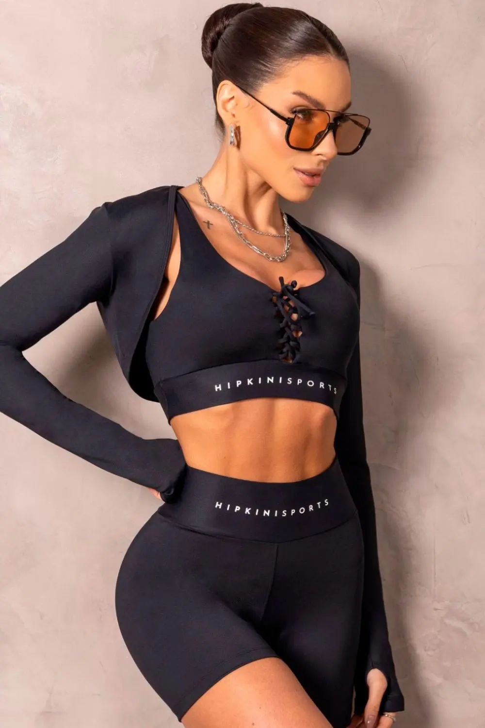 Shorts preto de cintura alta com cós anatômico que se ajusta perfeitamente ao corpo. Confortável e moderno, valoriza a silhueta e garante liberdade de movimento durante os treinos.