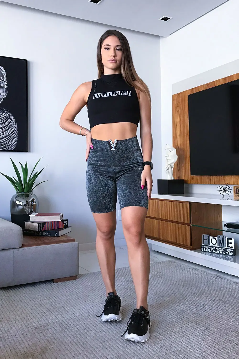 Shorts LabellaMafia. Confeccionado em Lurex, tecido com Brilho.