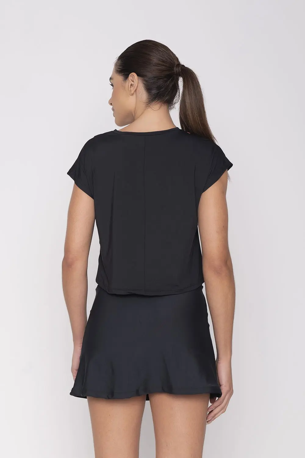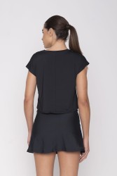 Shorts saia fitness preto com bolsos internos, embaixo da saia, de forma bastante discreta e segura.