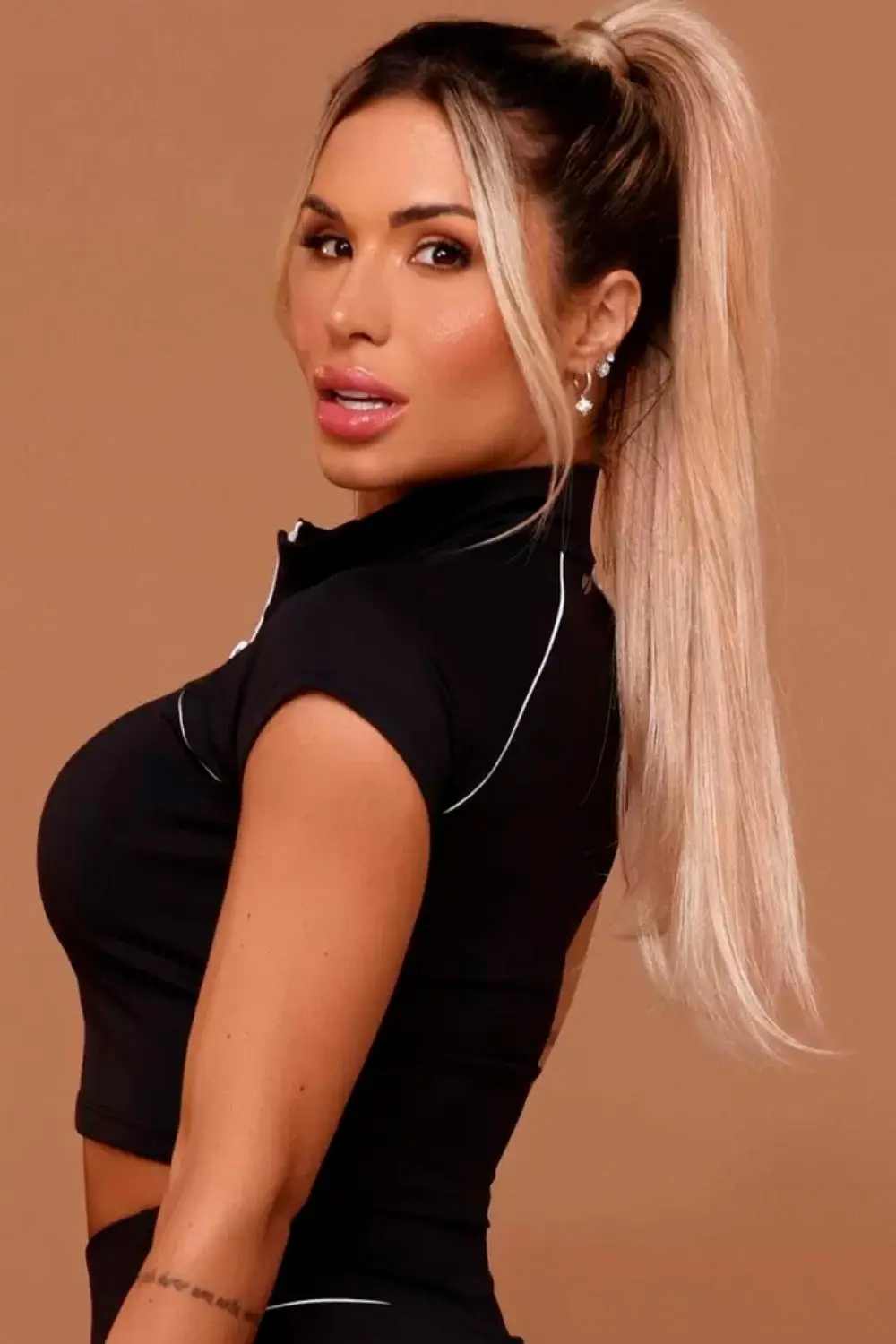 Blusa cropped preta com zíper frontal. Modelo justo ao corpo, com detalhe branco que adiciona estilo esportivo. Ideal para compor looks fitness modernos e confortáveis.