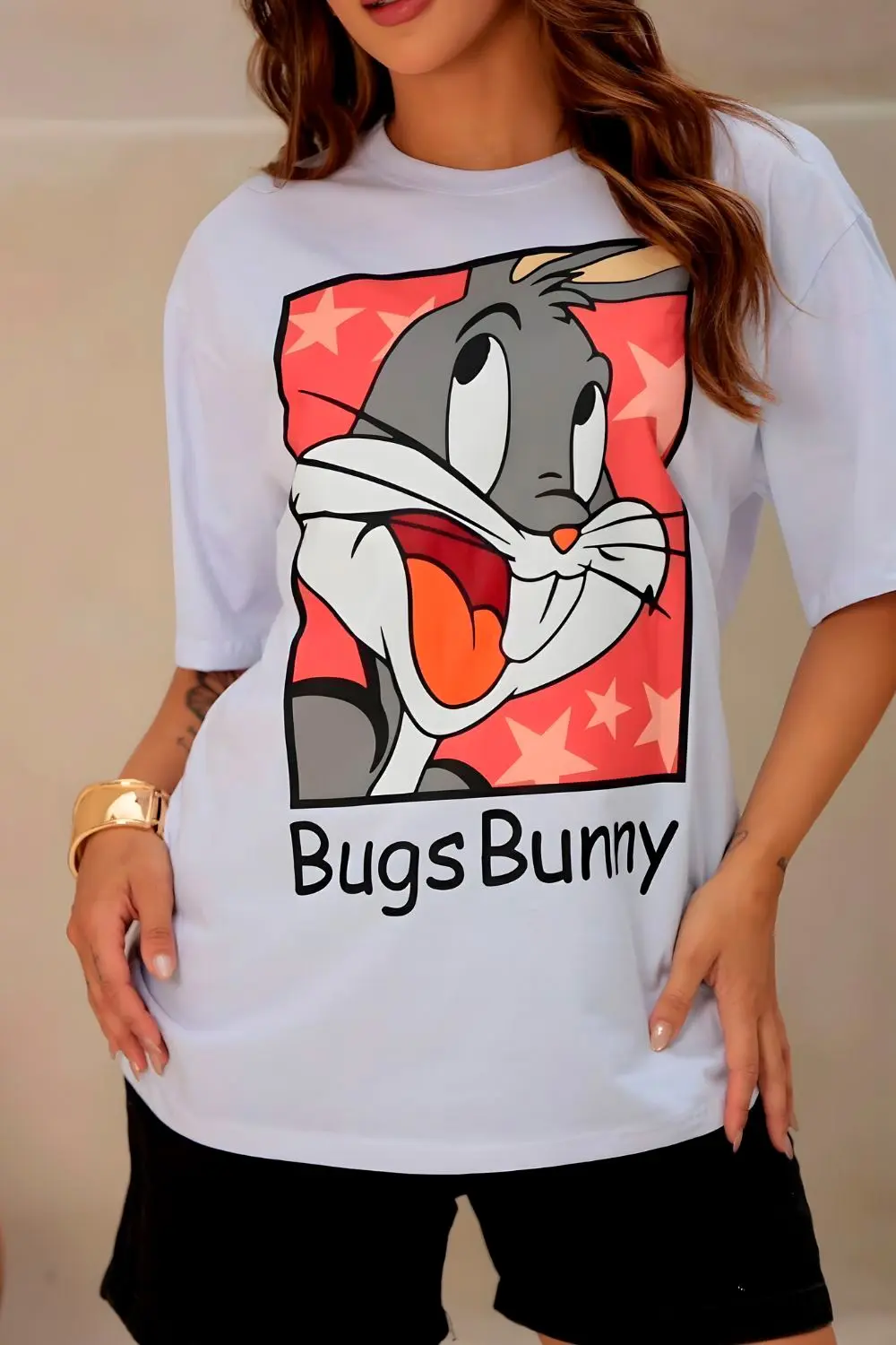 T-Shirts com estampa frontal do clássico Bugs Bunny. Modelagem confortável e moderna, ideal para looks casuais cheios de personalidade. Perfeita para quem busca estilo descontraído com um toque pop e atemporal.