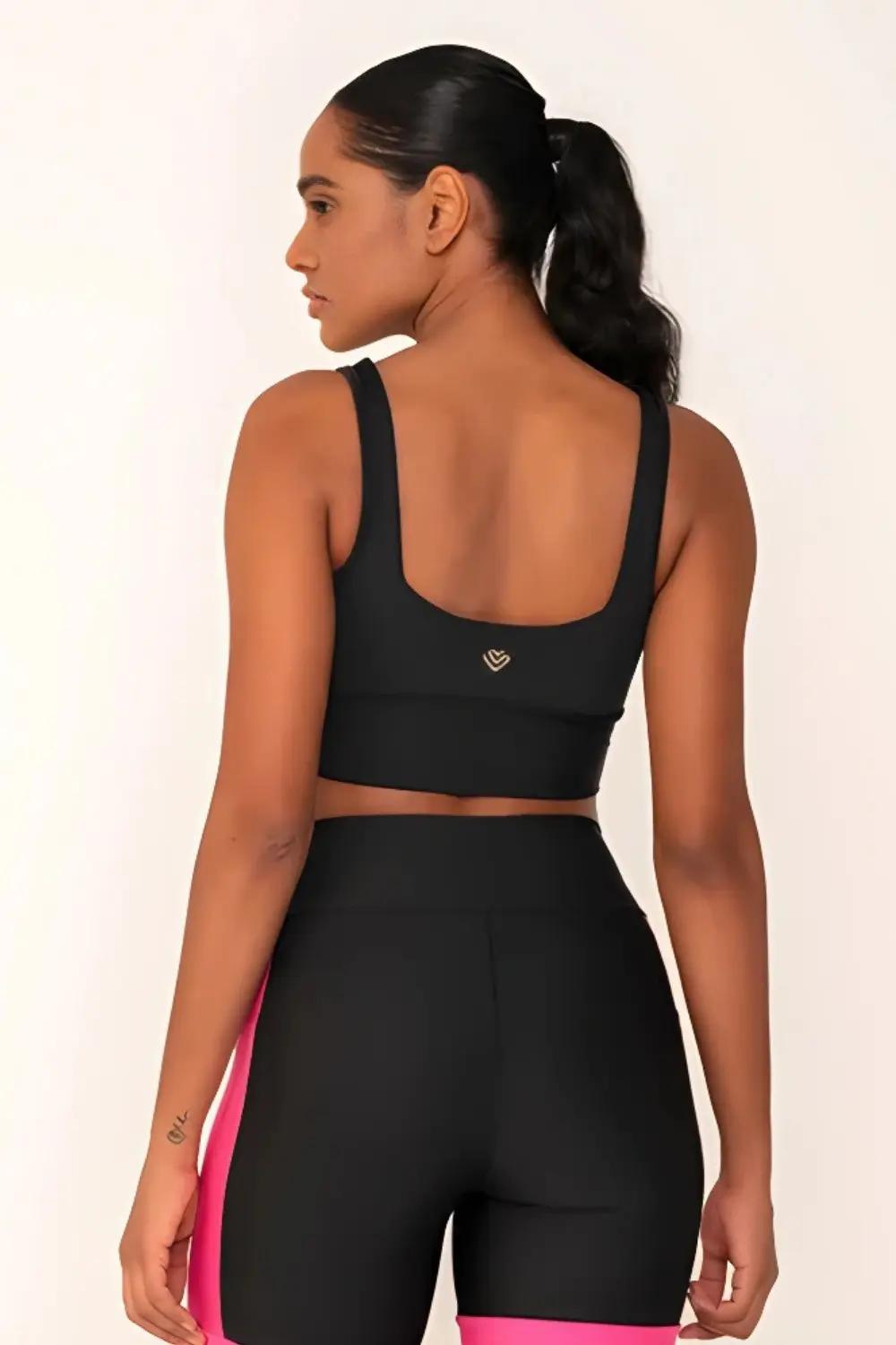 Top de modelagem reta com decote quadrado e alças largas, oferecendo sustentação e conforto com toque moderno. Ideal para treinos ou composições casuais, a peça valoriza o corpo com design minimalista e tecido de alta compressão.