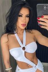 O vestido apresenta cortes estratégicos em locais estratégicos, como nos ombros, nas laterais ou na parte superior das costas. Esses cortes adicionam uma dose de sensualidade e revelam sutis toques de pele, criando um visual ousado e intrigante.
