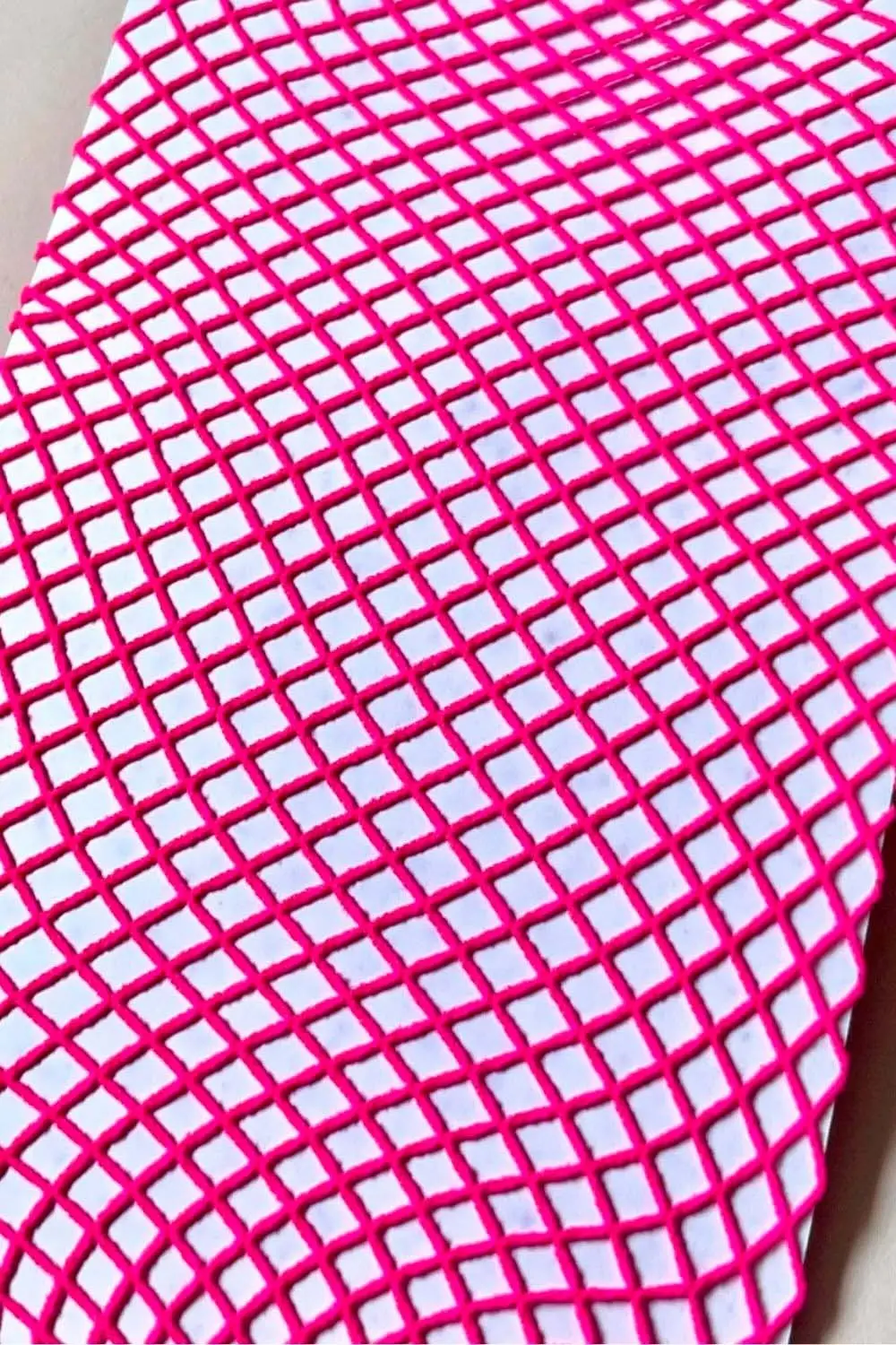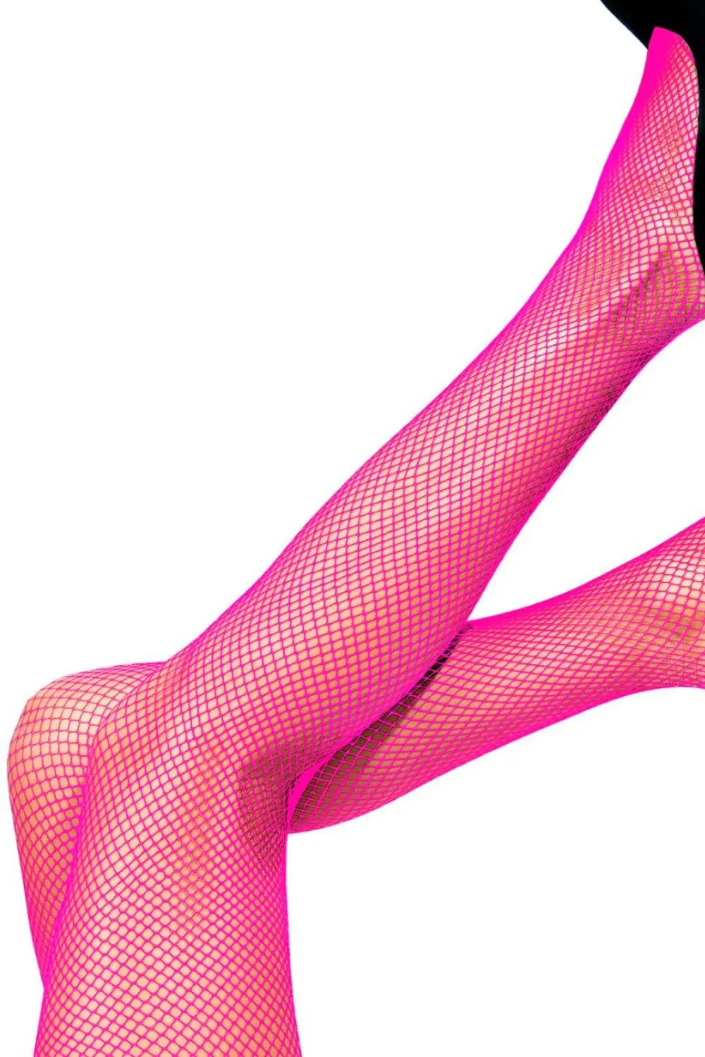 Vibrant pink fishnet tights, with a great fit and striking look for modern and sensual outfits.