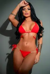 bikini with a triangle top and metallic chain detail, combined with side-tie bottoms that accentuate curves with sensuality and elegance.