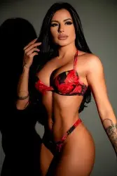 Bikini with a red rose print, structured top that enhances the bust and bottoms with an anatomical design for a perfect fit. Elegant and striking.