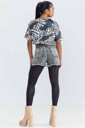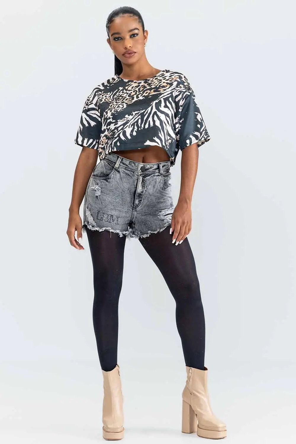 Description: Printed cropped that provides more comfort and freedom of movement for the arms. In addition to a light and comfortable fabric, it has small black rhinestones across the bust, giving the piece a touch of style and modernity.