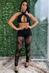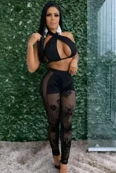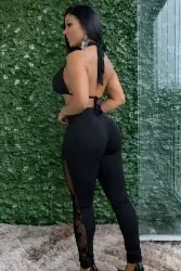 Top with a modern design and flattering cutouts. Features a tie at the neck and adjustable back, ensuring comfort, support, and a sophisticated look.