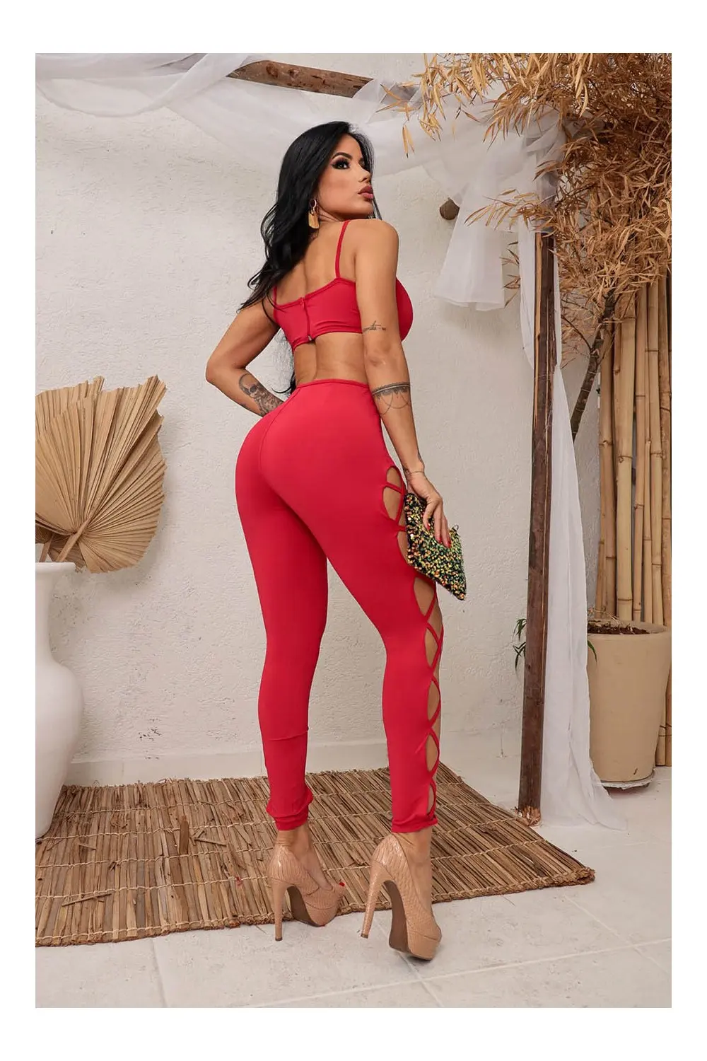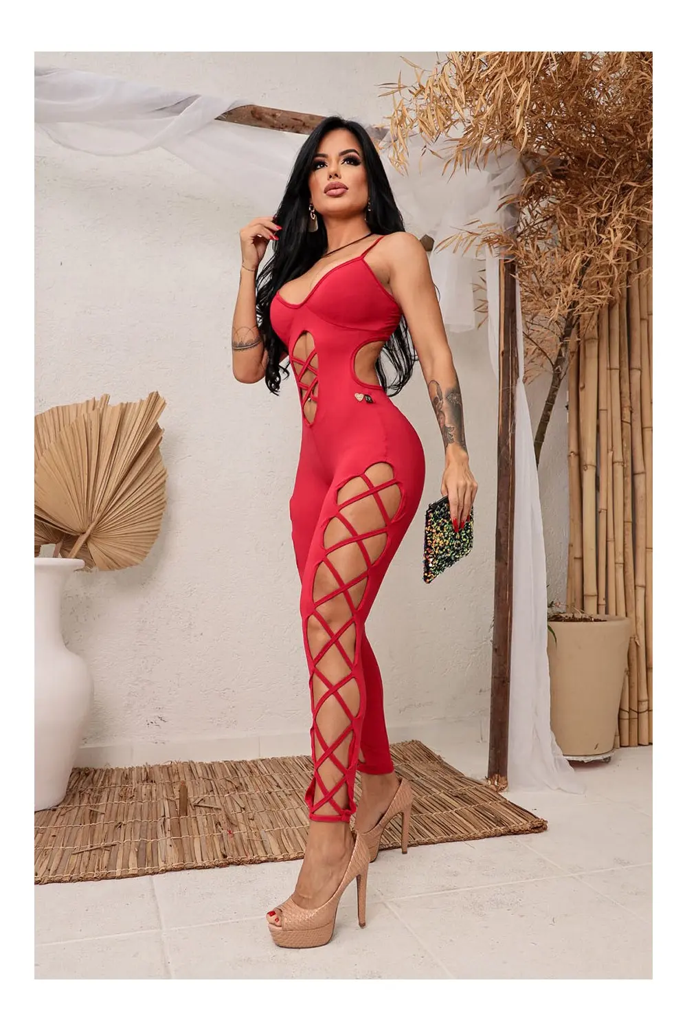Dive into the bold and dazzling with this red jumpsuit! Featuring crossed straps on the front and sides giving a touch of sensuality and power!