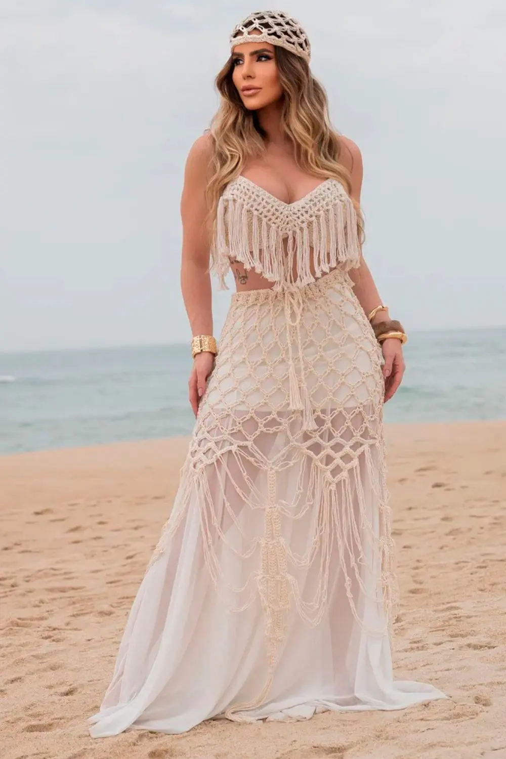 Be enchanted by the elegance and authenticity of this Handmade Crochet Skirt, an exclusive piece entirely handcrafted using artisanal techniques. Made with hand-crocheted details, this skirt showcases the delicacy of hand-intertwined stitches, creating an openwork design that flatters the body and provides a touch of natural sophistication.