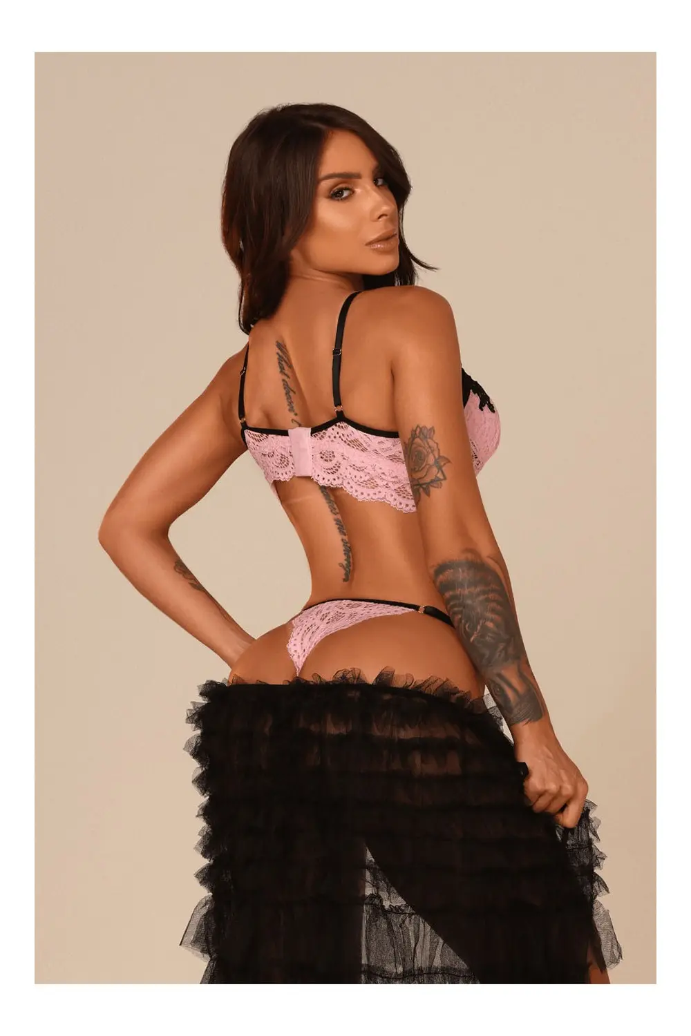 Elevate your sensuality with our exclusive set, featuring a luxurious lace bra with underwire and cups for perfect support, plus guipir lace details for a touch of sophistication. Complemented by lace panties with adjustments on the sides for the ideal fit. Don't miss this limited edition and add a touch of elegance to your lingerie.