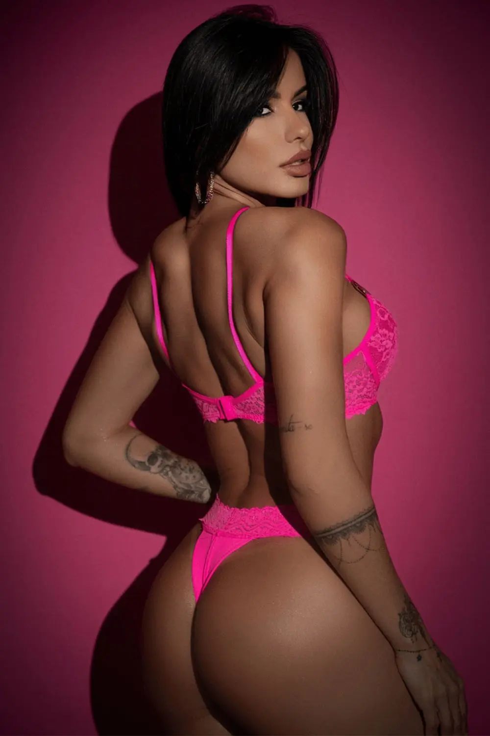 The lace set with underwire and cups is truly charming. With a heart-shaped detail on the straps, the bra exudes delicacy. The lace panties, with a double underwire, have a delicate and comfortable waistband, without adjustment on the sides, providing a perfect combination of comfort and sensuality.