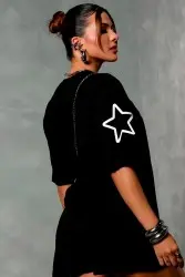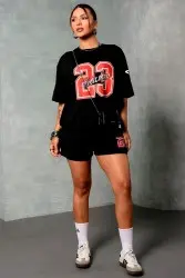 Casual sporty set with comfortable T-shirts and loose shorts. Clean design with a front print that brings urban identity and practicality to everyday wear.