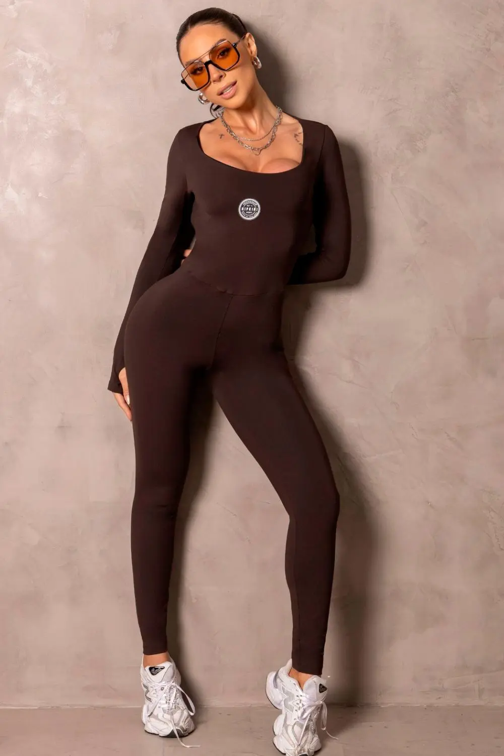 A perfect jumpsuit for training on cooler days, with long sleeves and a gorgeous back neckline, this jumpsuit will deliver performance and elegance. Featuring a silk-screen print, it offers a perfect fit, without padding, and ensures comfort during use.