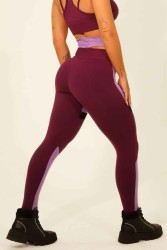 Characteristics: Sports leggings in polyamide in grape color with lilac details. It has a high waistband to enhance the body even more. The model made of selected materials transforms the practice of physical exercises into something pleasurable. With perfect modeling to enhance your body.