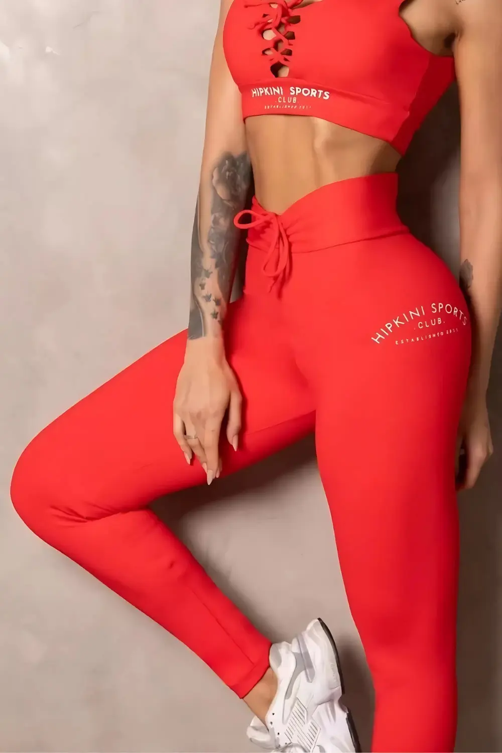 Hipkini Fitness Leggings. In classic black, this piece stands out with white writing on the side, giving it a sporty and modern touch. With a high waistband and perfect fit, it offers comfort and security for any type of workout. Essential for those seeking a striking look without sacrificing functionality. It features an adjustable tie.