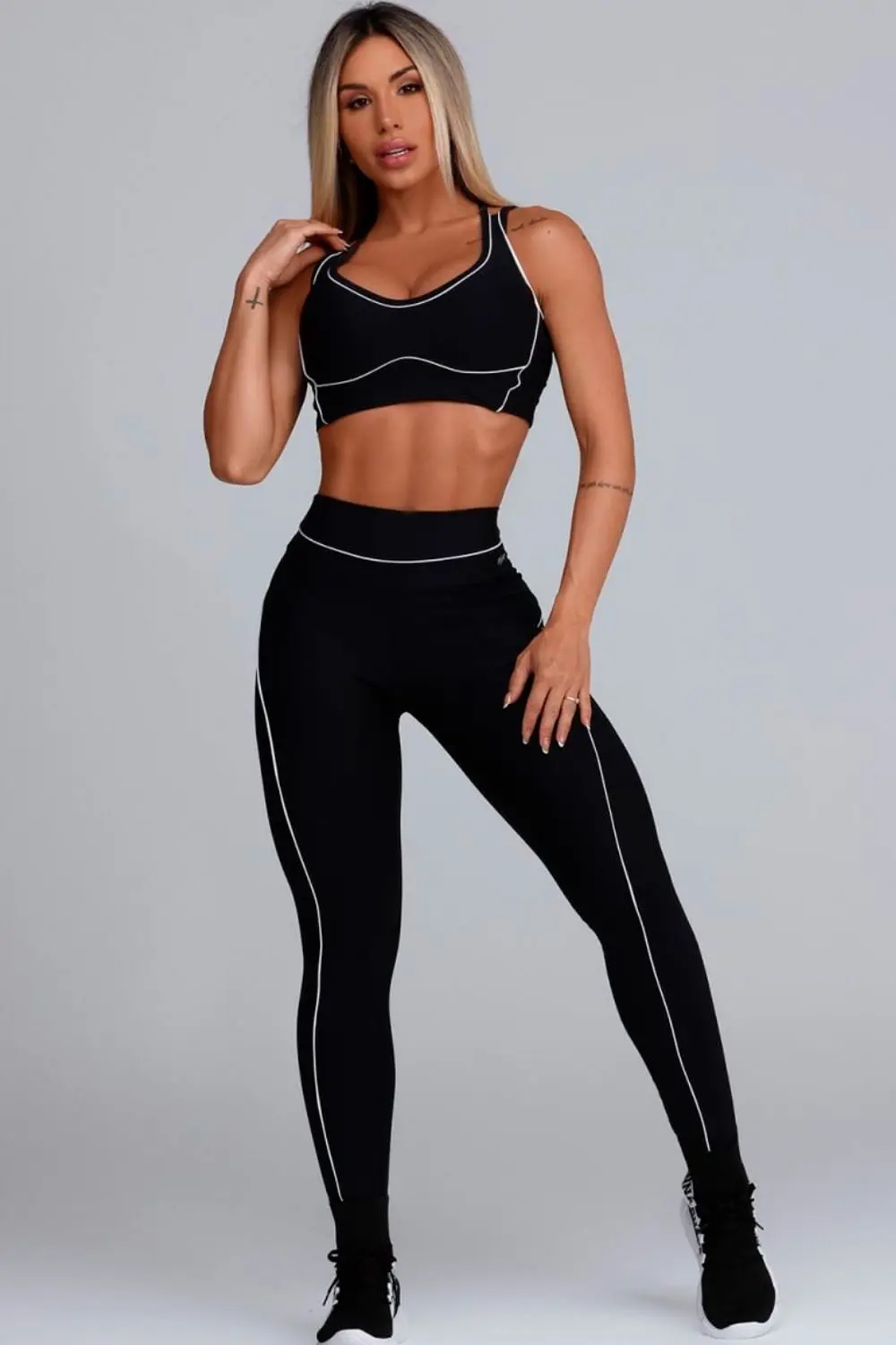 The Day One Black Leggings combine modernity and just the right amount of support. Made from firm and comfortable fabric, they offer zero transparency and an impeccable fit. Their cutouts elongate the silhouette, while the anatomical waistband ensures perfect shaping and enhances the buttocks. A versatile piece for training with confidence and creating sophisticated looks.