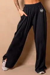 Wide-leg pants with a modern, high-waisted elastic waistband for comfort and practicality. Made from a fabric with excellent drape, it offers a soft touch, a clean look, and versatility for everyday wear, combining style and comfort in a single garment.
