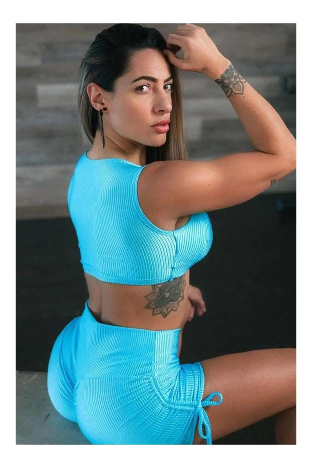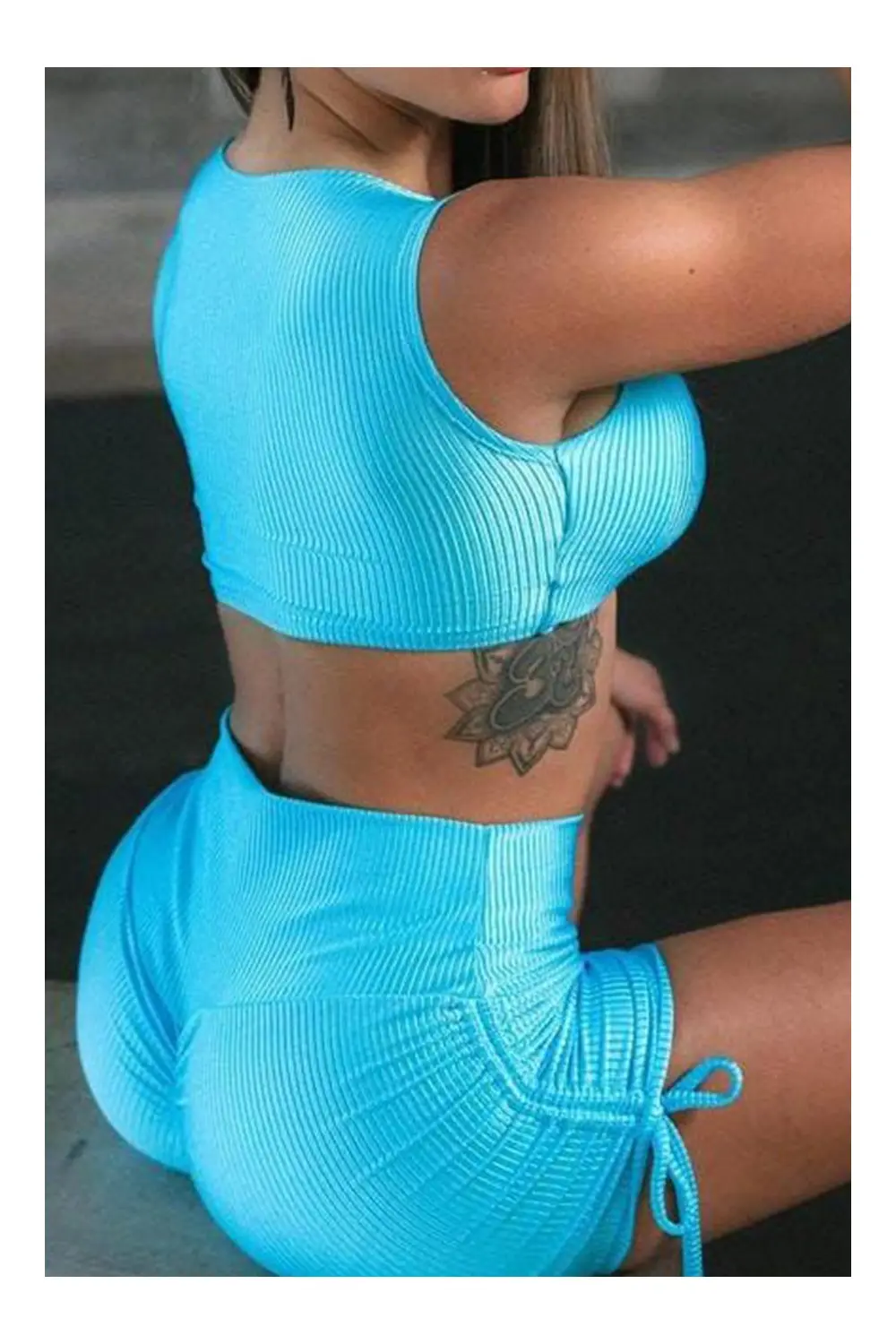 A sky blue ribbed set is the definition of comfort and style! The ribbed fabric provides a cozy feel, while the sky blue tone adds a touch of softness to the look. Perfect for a relaxed day or relaxing at home in style. Dress up in this set and feel comfortable and elegant all day long!