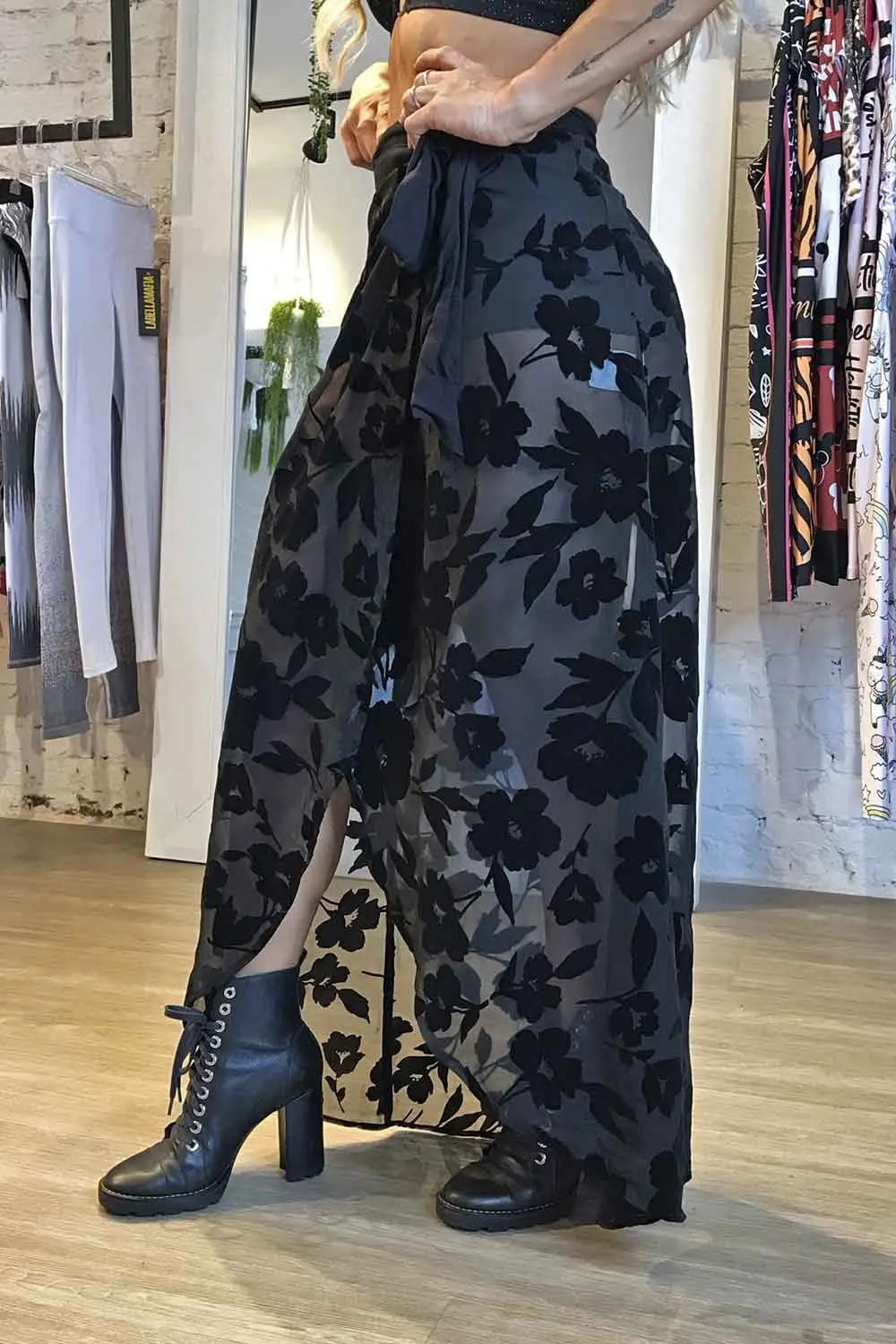 Characteristics: Midi skirt made of transparent black fabric with velvet in the flowers.