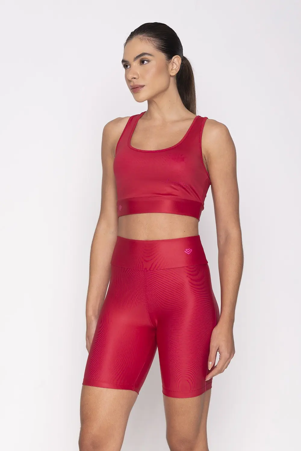 Metallic red fitness top with soft fabric that provides comfort and support to the bust, making it the perfect choice for any occasion. Its refined appearance allows it to be used in both sports and casual environments.