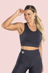 Navy blue fitness top with medium straps that provide good support to the bust and a sporty touch to the look. The bottom of the top is made of a tight-fitting band, made of elastic fabric that adjusts to the curves of the body and features a racerback style.